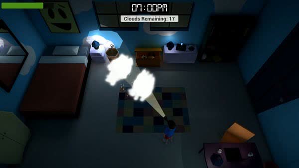 "In The Clouds is a short, melancholic re-interpretation of the arcade classic Asteroids, that explores the psyche of a young boy." - Author's description