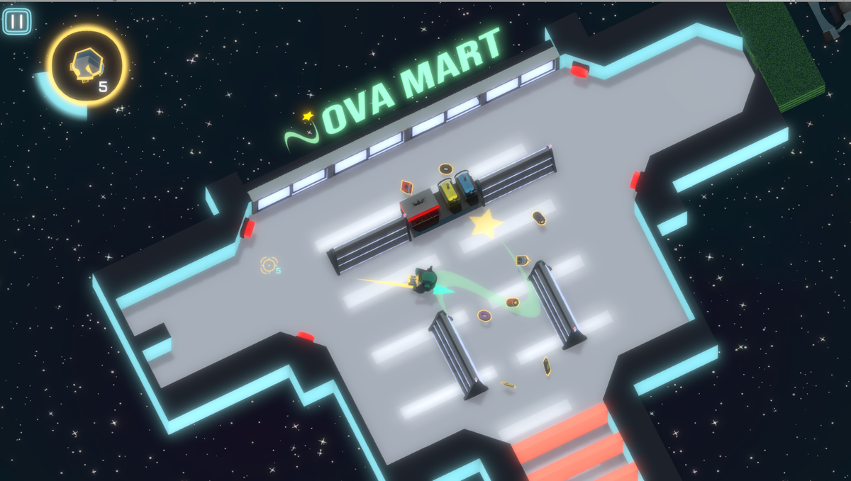 "Kleptonaut is a puzzle game about robbing convenience stores in zero-gravity." - Author's description