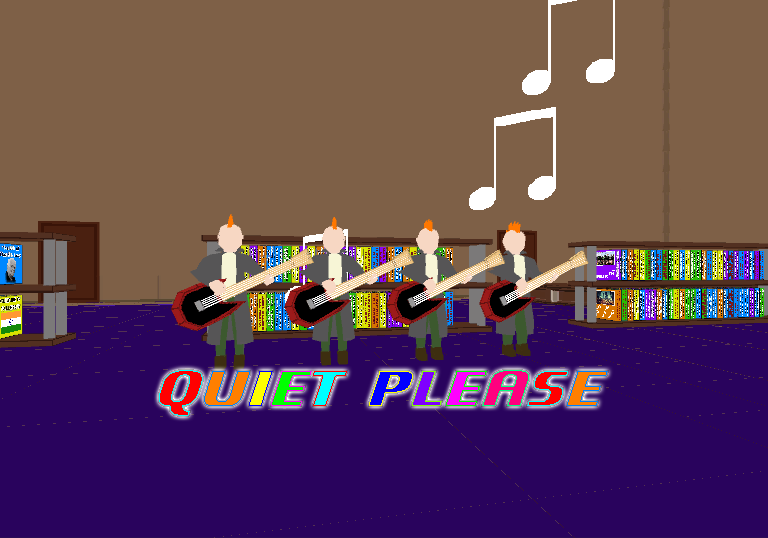 "You are the librarian in a popular library, but a pesky boy band keep using the side rooms for practice and become too noisy." - Author's description
