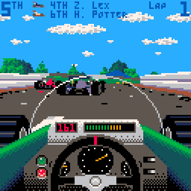 "Mot's Grand Prix is a pseudo 3D Formula 1 racer inspired by Grand Prix Circuit, Continental Circus and a bunch of other 80s/90s racers I've forgotten :)." - Author's description