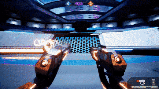 "Surgeball is a first-person, team-oriented ball sport with a retro-futuristic aesthetic. There are couple of twists, you can only move the ball by shooting it, and everyone is on jet powered skates." - Author's description