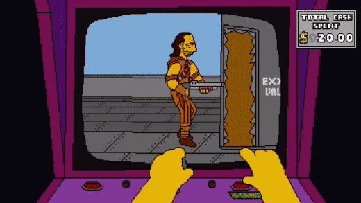A large scale real imagining of the 'fake' Waterworld arcade game that Milhouse plays during a 10 second joke in a 1997 episode of The Simpsons.