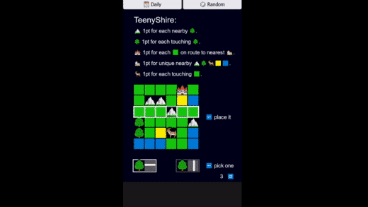 Draw a TeenyShire and maximise your score in 11 turns by following the likes of all the different elements.