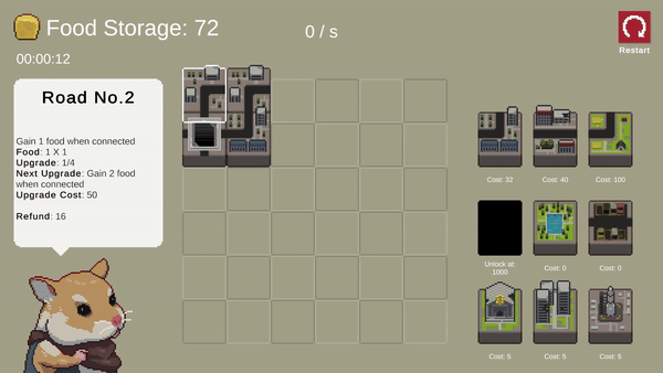 "You are tiny hamsters surviving in a post-apocalyptic world. Build roads to your home and transport as much food as you can!" - Author's description