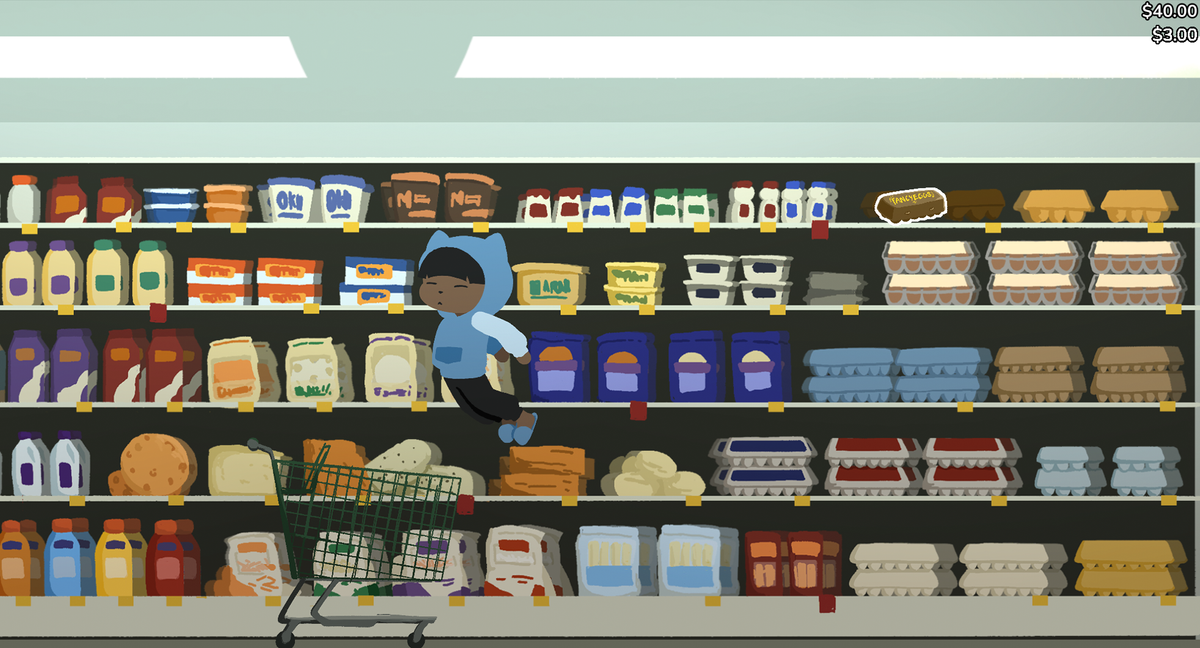 "You are a little cat person whose cat mom has sent you to The Grocery Store. Will you succeed on purchasing items responsibly?" - Author's description