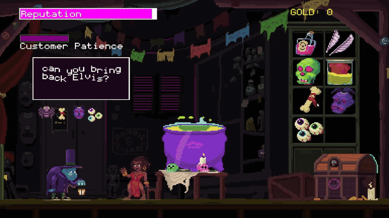 Your voodoo business is now open. Create enchanting spells! Earn gold! Watch out for evil Voodoo spirits