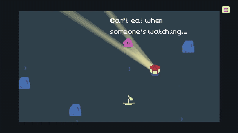 "In the cool ocean breeze, it's a pleasant night for a late night snack. Unfortunately, you're a shy eater and those pesky lighthouses won't give you the privacy you need!" - Author's description